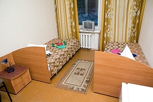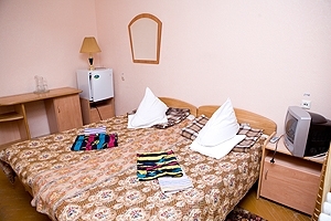 В номере: 2-е кровати, TV, холодильник, стол, 2 стула, шкаф.